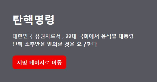 1. 탄핵명령닷컴 홈페이지에 접속 서명페이지로 이동 합니다.