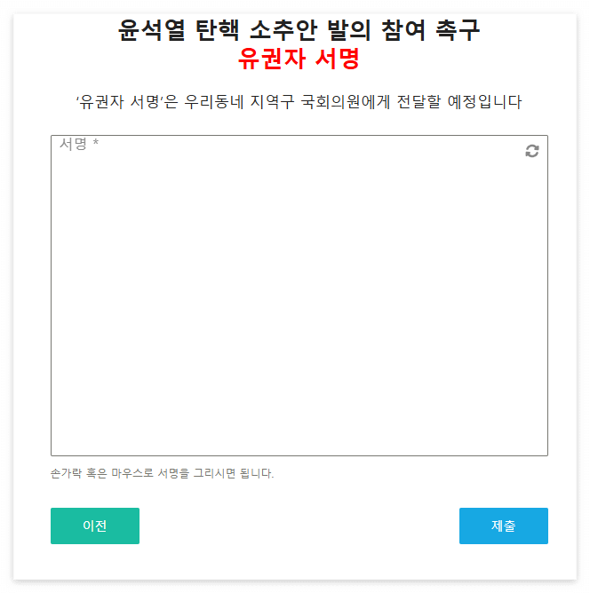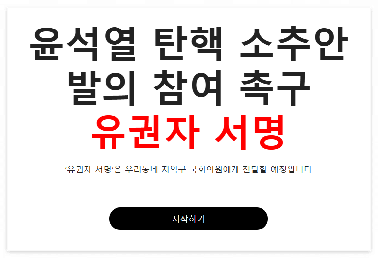 2. 윤석열 탄핵소추안 발의 참여 촉구 유권자 서명 시작하기를 선택합니다.